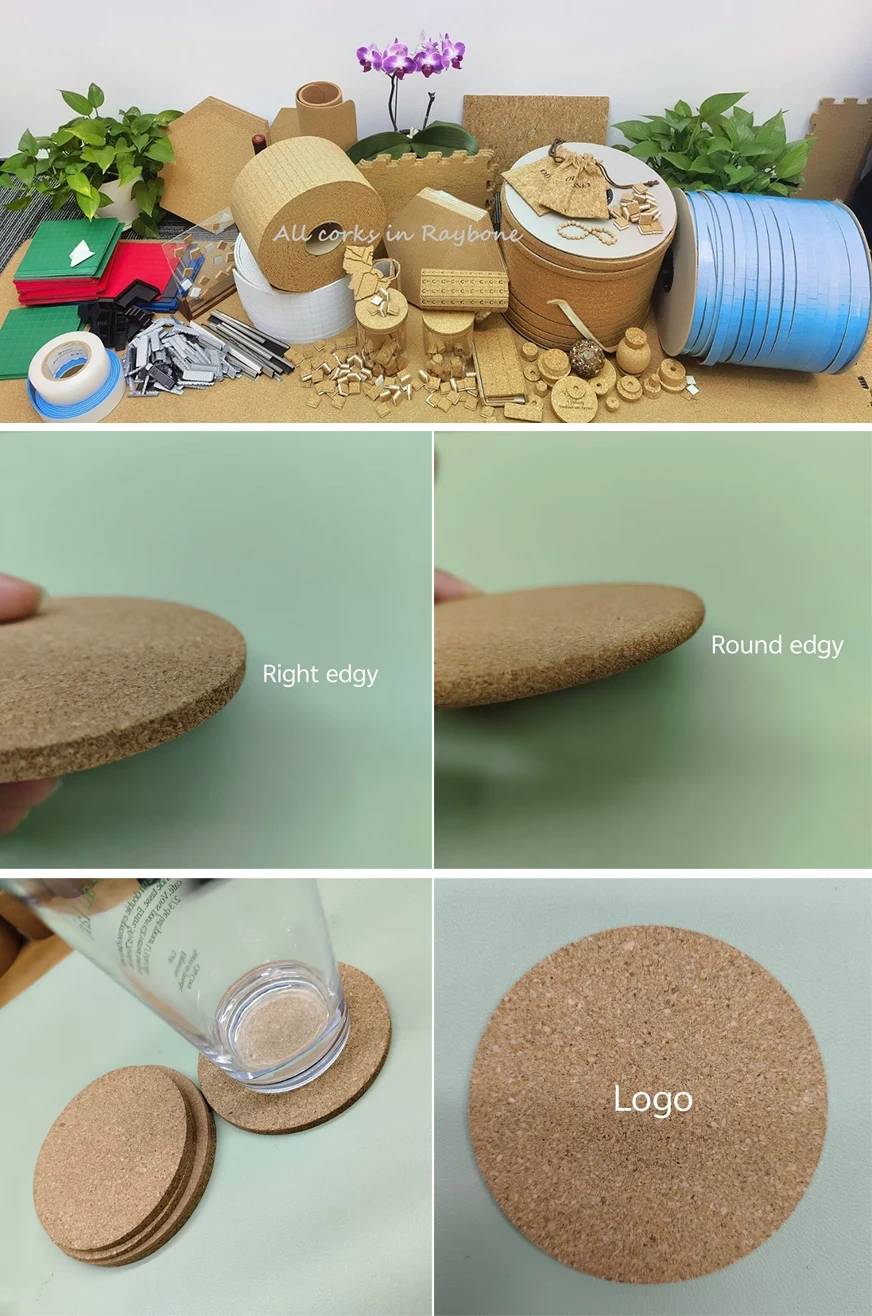 Okrogli podstavek za pijačo iz plute je priljubljen, ki ga proizvajajo v Raybonu. Cork Coaster je v glavnem okrogle in kvadratne oblike, okrogle so navadno bolj priljubljene pri naših strankah, imajo gladko površino, naravno teksturo in prosti prazen prostor za lep in edinstven vzorec ali logotip naših strank, ki je njihov nenadomestljiv izdelek po meri.